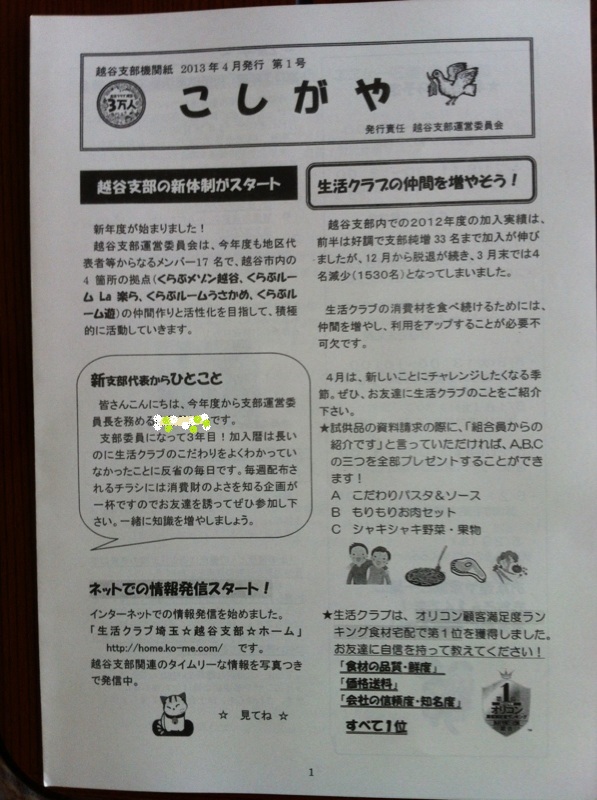 生活クラブ埼玉の越谷支部が発行する機関誌「☆こしがや☆」や配布チラシに載っている情報を紹介します。